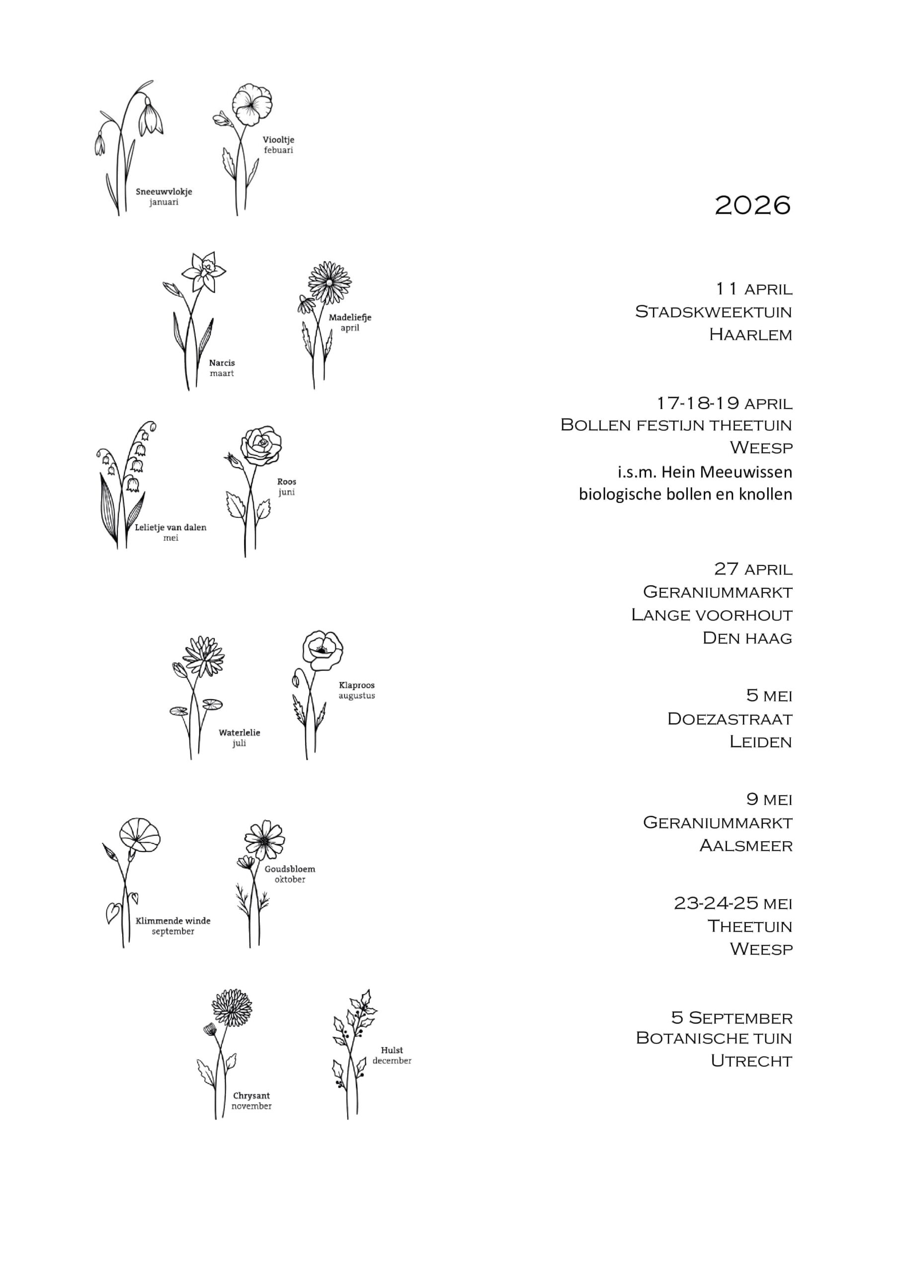 Wat ooit begon als “uitproberen” is uitgegroeid tot een bedrijf waarmee wij plantenmarkten bezoeken. Het uitproberen bestond uit het maken van plantenstekken, het scheuren van planten en het zaaien en opkweken. Toen er steeds meer planten bijkwamen ontstond het idee om deze planten aan te bieden aan bezoekers van genoemde plantenmarkten. Het besef dat planten de wereld mooier maken en helpen onze leefomgeving gezonder en insecten vriendelijker te maken speelde hierbij zeker een rol. Tuinieren is immers een vorm van ontspannen. Je hoofd leeg maken en ervaren wat er in de grond en lucht leeft en daarna te kunnen genieten van je inspanning. Zien hoe planten groeien en bloeien, kleuren harmoniëren en jaren voor deze rijkdom in onze omgeving kunnen zorgen. Zien hoe ook insecten hiervan komen genieten. Alleen al daarom kweken wij biologisch! Wij willen meewerken om dit alles in stand te houden.